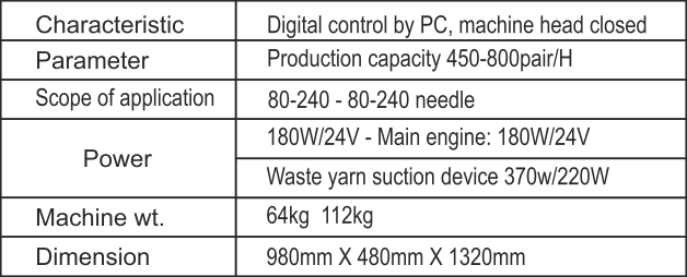 5. Adopting dual channel nose device, makes the sock sewed with fine flat seams.